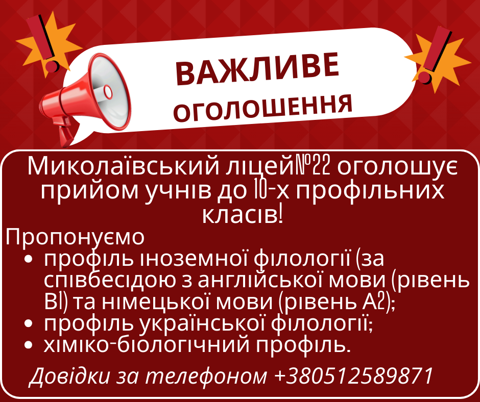 З 15.03-31.05.2025 стартує вступна кампанія до 1 класу 2025-2026 до Миколаївського ліцею № 22